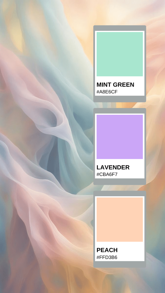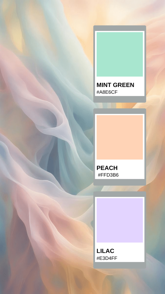 Soft shades like mint green, lavender, peach, and powder blue are dominating brand identities in 2025. Pastels convey calm, friendliness, and approachability while remaining versatile across industries.